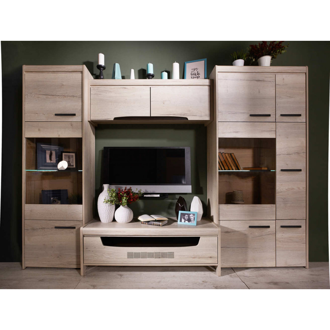 Гостиная «Мале» - обладательница лаконичного и свежего дизайна. Особое внимание привлекают тактильные ощущения от прикосновения к мебели. Декор и структуры, схожие с натуральным деревом по рисунку и шероховатости, придают глубину и естественность. Широкий спектр модулей позволит эргономично использовать Ваше пространство.