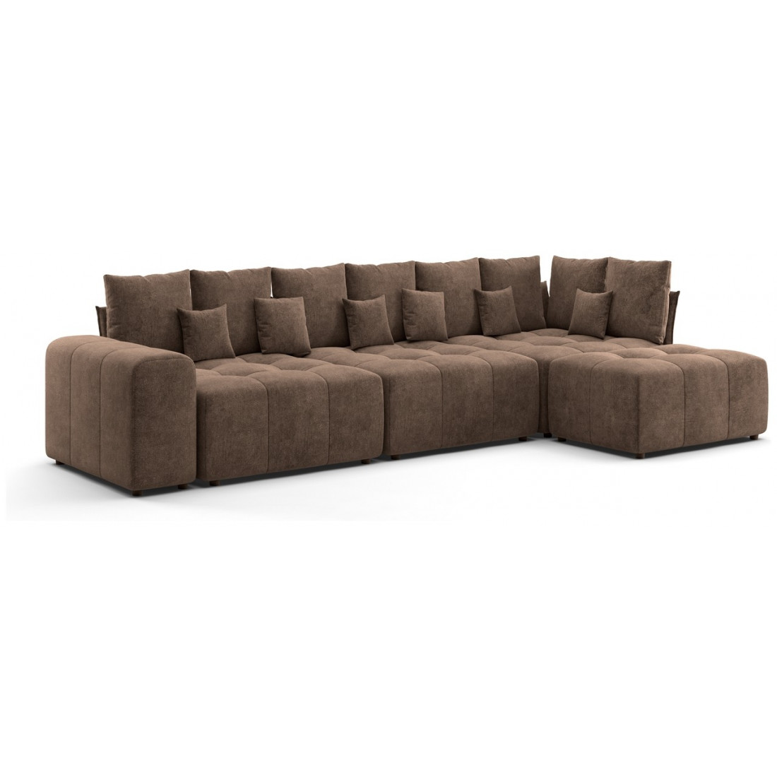 Модульный диван «Торонто» — это отличный вариант для тех, кому сложно подобрать монолитную конструкцию из-за сложной конфигурации помещения, а также тех, кто любит экспериментировать и часто делает перестановку. С его помощью можно легко изменить интерьер, превратив часть конструкции в пуф, кресло или софу.