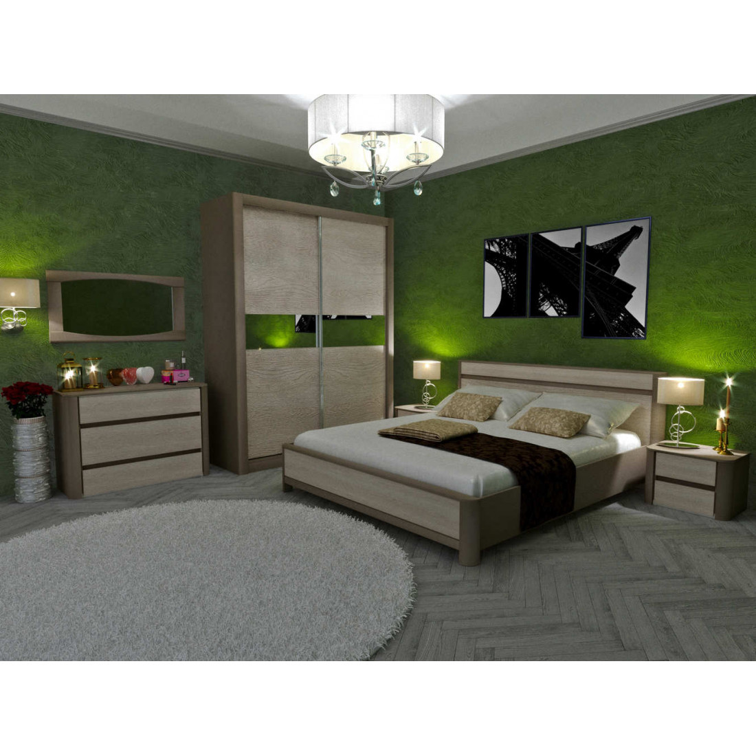 Гарнитур для спальни «Лацио» украсит пространство, сделает его легким и уютным. Спокойные тона и фактуры, задействованные в данной мебели, располагают у отдыху. Сочетание глубокого серого и светлого оттенков исключают громоздкость и помогают достичь эффекта зрительного увеличения пространства. Приобретение мебели «Лацио» гарантирует покупателю визуальную эстетику, а также удобство и практичность применения.